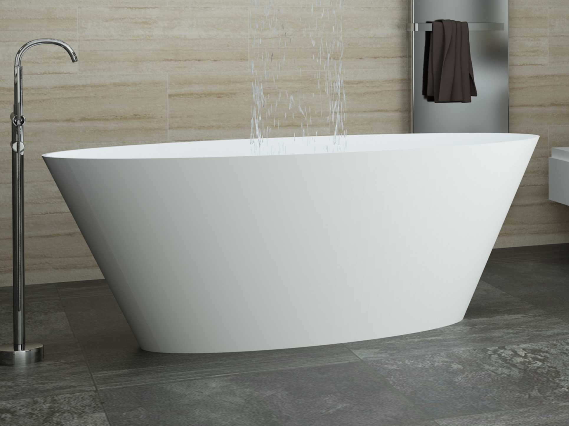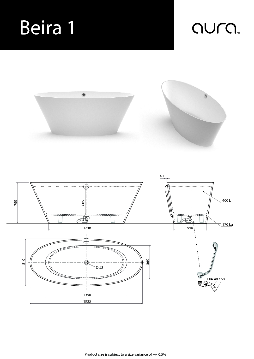 Brīvi stāvoša vanna Beira 1 – ļoti liela, dziļa un ērta akmens masas vanna ar perfekti glancētu virsmu. Papildus var komplektēt ar izlietni Beira 1 , vai izvēlēties piemērotāko no AURA™ izlietņu klāsta.