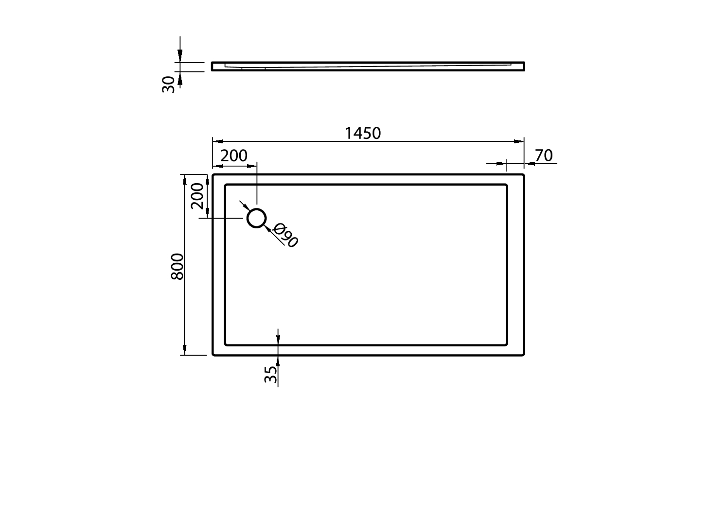 1450 × 800 × 30 mm