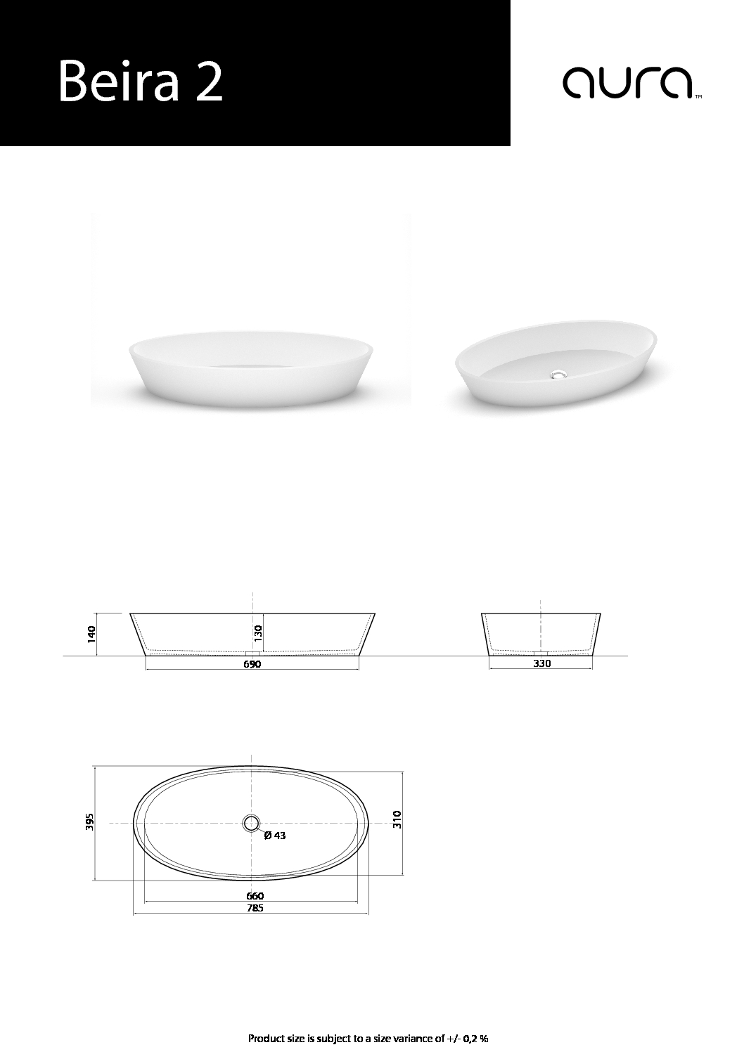 Akmens masas izlietne Beira 2 – uz virsmas novietojama izlietne ar perfekti glancētu virsmu Dizainiski saskaņota ar vannu Beira, bet iespējams komplektēt arī ar kādu citu AURA™ vannu, izvēloties piemērotāko no mūsu vannu klāsta.