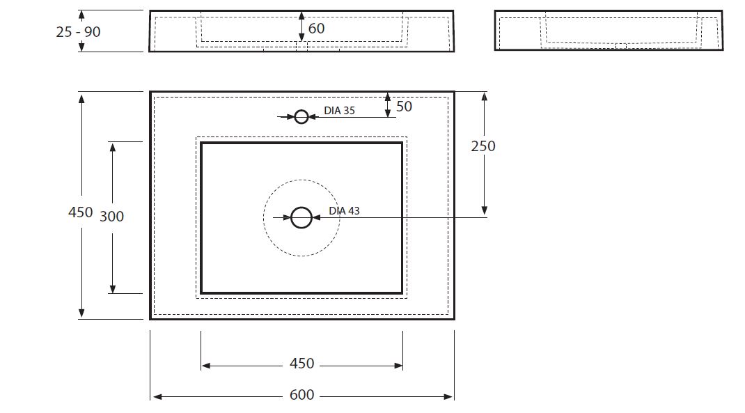 600 x 450 x 90 mm
