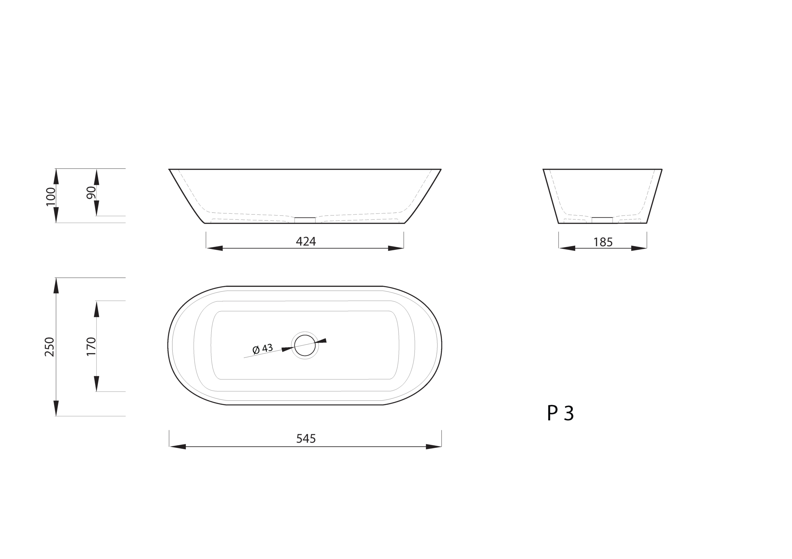 (izlietne bez pārplūdes) Izlietne P3 – uz virsmas novietojama izlietne ar perfekti glancētu virsmu. Papildus varat komplektēt ar Vispool® vannu, izvēloties no mūsu vannu klāsta.