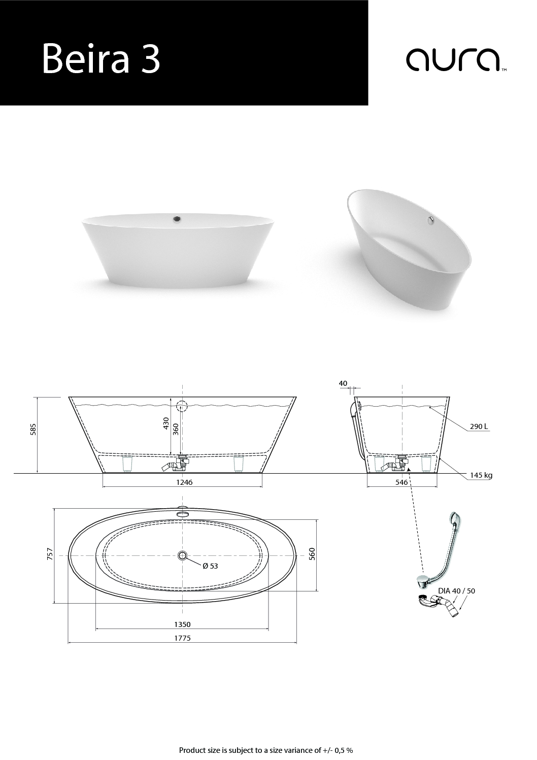 (vanna ar pārplūdi pēc pieprasījuma) Brīvi stāvoša vanna Beira 3 – vidēji liela un ļoti ērta akmens masas vanna ar perfekti glancētu virsmu Papildus var komplektēt ar izlietni Beira 3 (https://vispool.lv/produkts/izlietne-beira-3/), vai izvēlēties piemērotāko no AURA™ izlietņu klāsta (https://vispool.lv/produkta-kategorija/izlietnes/).